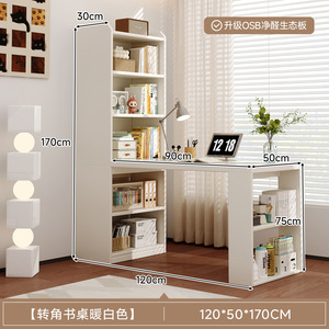 奶油风转角书桌书架一体桌成人家用2025新款学习桌法式L型电脑桌
