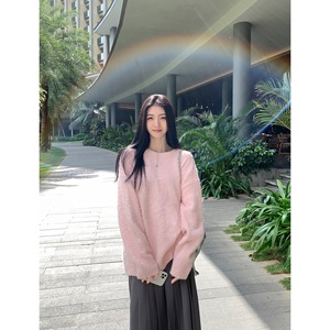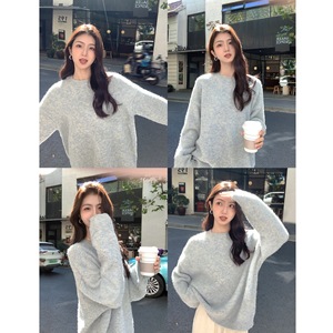 MULVAN宽松圆领毛衣女秋冬新款慵懒风休闲百搭套头羊毛针织衫