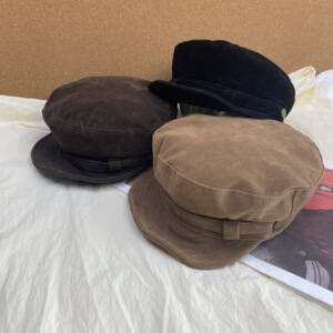 早秋氛围感美拉德麂皮绒平顶报童帽学院风时尚复古英伦风鸭舌帽女