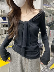 辣妹纯欲套装V领长袖今年流行爆款针织衫2025早秋新款别致上衣女