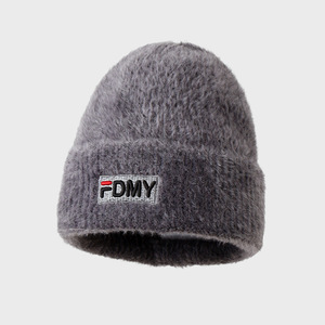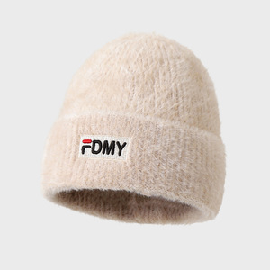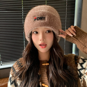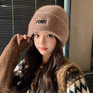 日系大头围秋冬帽子女款加绒保暖毛线针织帽纯色百搭字母护耳冷帽