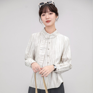 法式竖条纹长袖衬衫女2025秋季新款小众设计感飘带衬衣别致上衣