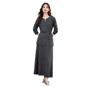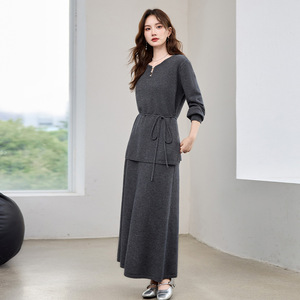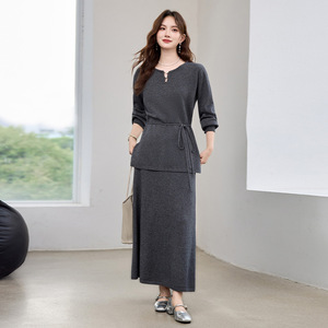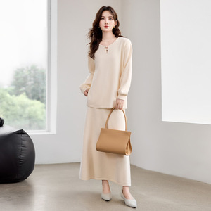 2025秋季新款显瘦长袖镂空不规则针织衫+高腰半身裙两件套女套装