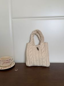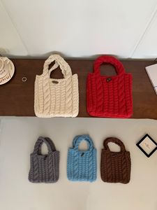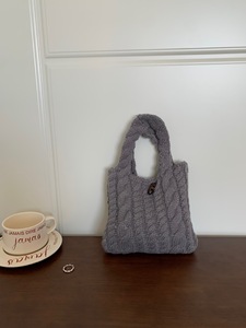 韩系简约针织手提包包女秋冬新款ins风毛线钩织托特包通勤手拎包