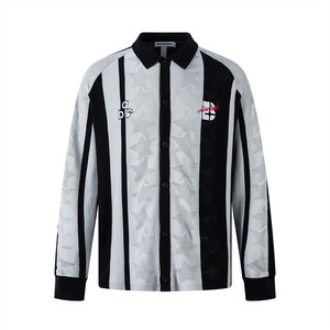 撞色竖条纹翻领开衫毛衣春秋款宽松休闲男士潮牌五角星提花针织衫