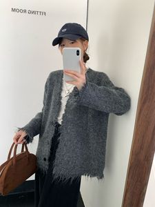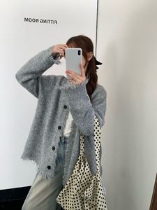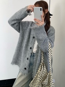 韩系设计感流苏边毛衣外套女秋冬新款宽松百搭针织开衫上衣女1361