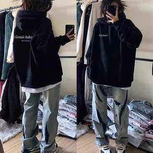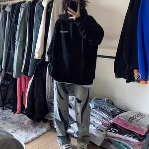 复古高街加绒连帽卫衣女秋2025新款宽松慵懒风潮牌外套oversize