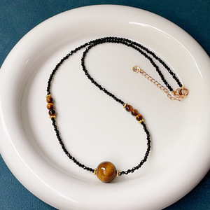 黑尖晶石虎眼石项链新中式复古小众美拉德风虎眼石锁骨链秋冬颈链