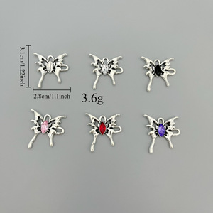 DIY合金饰品配件 时尚个性镶钻蝴蝶吊坠项链钥匙扣挂件