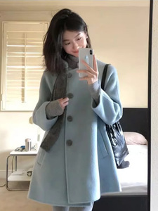 张涩25冬悉尼旧事 双面羊绒大衣双顺羊毛撞色蝴蝶结A字版大衣涩