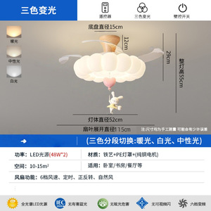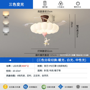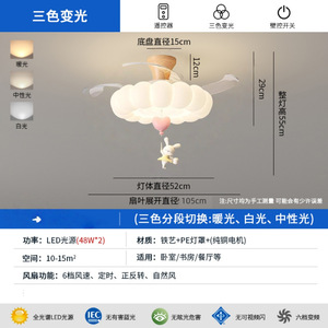 卧室风扇灯奶油风儿童房间风扇灯静音智能客厅餐厅吊扇灯中山灯具