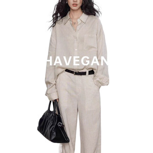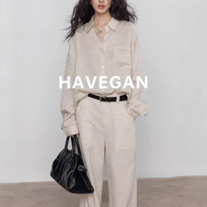 与间HAVEGAN/天丝亚麻长袖秋季防晒衬衫女宽松慵懒松弛休闲上衣