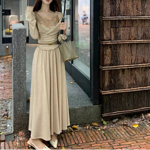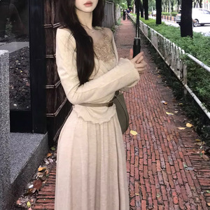 巨好看的早秋一整套温柔长袖假两件上衣半身裙针织套装2025秋季新