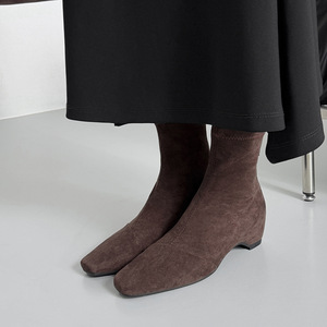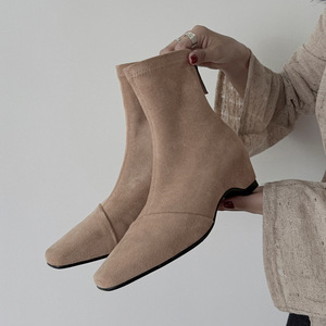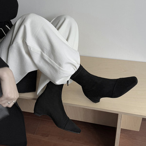 韩系气质大美女~内增高绒面瘦瘦靴2025秋冬中跟方头弹力显瘦短靴