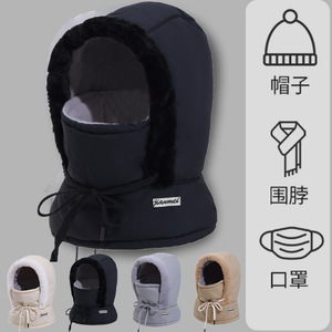 帽子女冬季围脖一体加厚保暖套头帽防风骑行电动车保暖神器雷锋帽