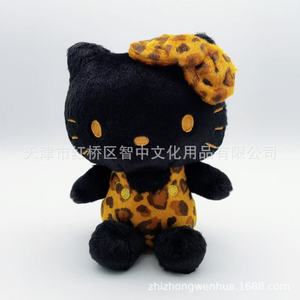 日本Sanrio三丽鸥Hellokitty夏威夷限定款黑皮豹纹毛绒公仔玩偶