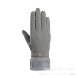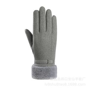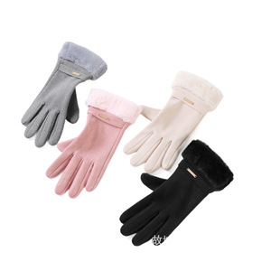 新款跨境德绒保暖手套女秋冬季全指触屏加绒户外外出骑行服饰百搭