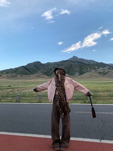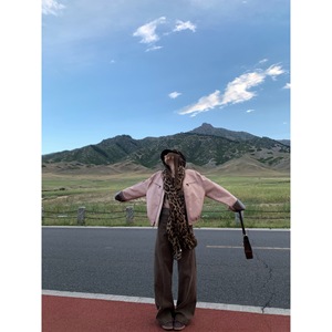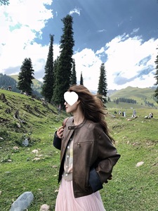 小君君 人生皮衣/复古时髦艺术家撞色pu皮衣女秋夹克外套
