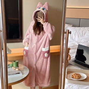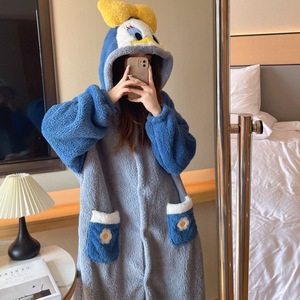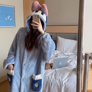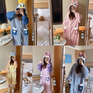 鸭鸭珊瑚绒睡衣女情侣加绒加厚冬季男女睡袍情侣家居服冬季睡裙女