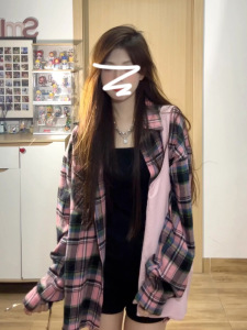 美式复古格子衬衫外套女夏防晒2025新款oversize长袖上衣早秋薄款