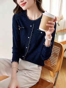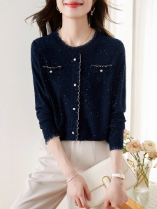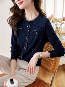 哥家商场同款女装2025秋季小香风针织内搭洋气小衫长袖打底衫上衣