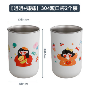 一家三口漱口杯不锈钢儿童卡通刷牙杯亲子洗漱杯高颜值情侣牙刷杯