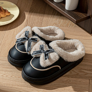 蝴蝶结棉拖女居家棉拖鞋女加绒棉拖鞋男保暖鞋月子鞋女包头拖