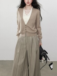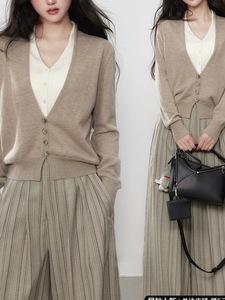 气质时尚减龄松弛感假两件V领针织衫女秋季新叠穿设计毛衣开衫