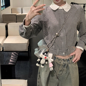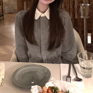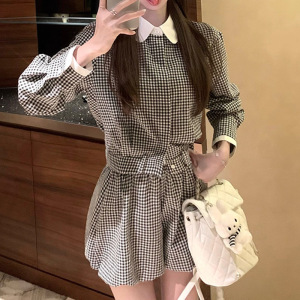 ZHOYUE甜心欧尼 格子娃娃领衬衫公主气质经典时髦感短裤 秋季2025