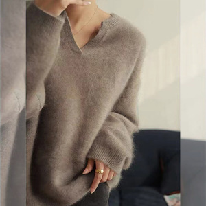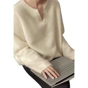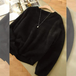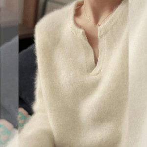 浣熊绒白色领毛衣女秋冬季小个子宽松慵懒风内搭针织衫打底上衣