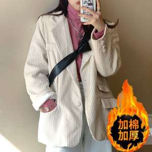 灯芯绒中长款西装外套女韩版秋冬2025新款宽松炸街休闲西服上衣潮