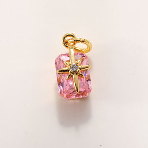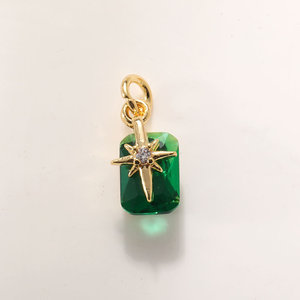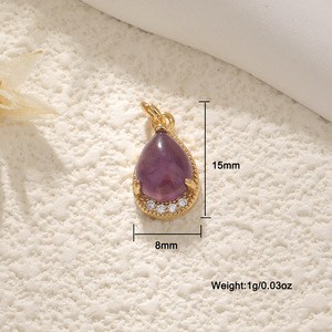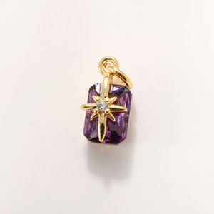 人鱼眼泪DIY配件吊坠铜镀真金保色紫粉绿色水晶项链挂件六角星芒
