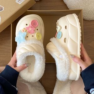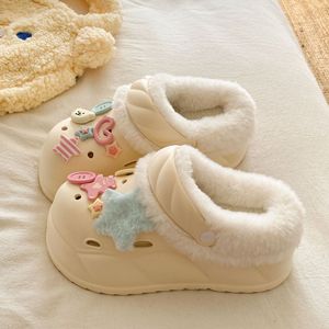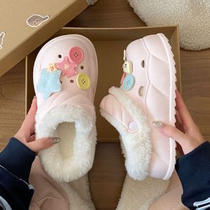 洞洞鞋女加绒冬季高级感可拆卸秋冬少女学生宿舍防滑防臭棉拖鞋