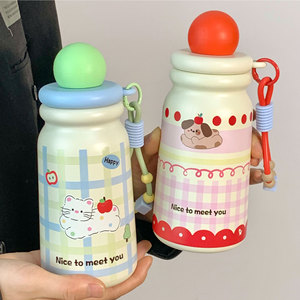卡通萌趣高颜值保温杯学生宝宝上学吸管儿童水杯大容量女孩茶隔杯