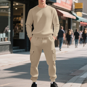 跨境独立站美式秋冬男士宽松肌理纹提花休闲运动通勤工装卫衣套装