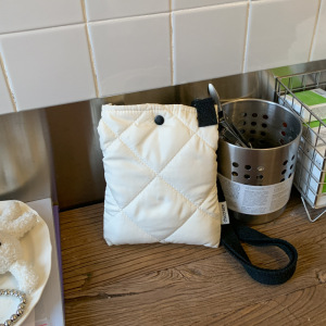 单肩包女士秋冬2025新款菱格绣线小包包ins手机包衔缝棉服斜挎包