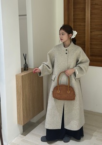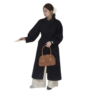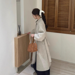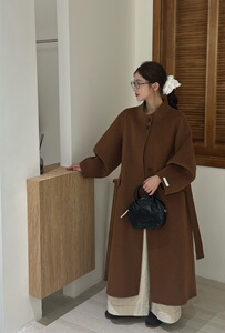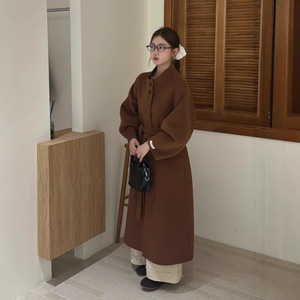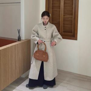 简约气质立领腰带双面羊毛大衣长款加厚保暖系带羊绒毛呢宽松外套