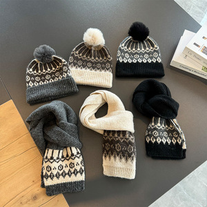 儿童帽子围巾两件套新款森系中大童复古针织毛线帽厚款防寒针织帽