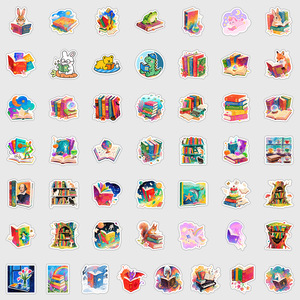 跨境50张可爱风书籍涂鸦贴纸水杯电脑防水装饰贴纸创意文具贴画