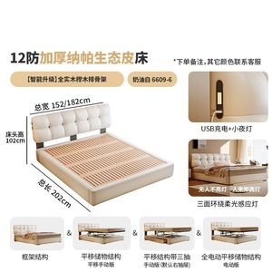 加厚生态皮床【智能款:多功能USB+悬浮感应灯】全实木榉木排骨架
