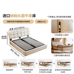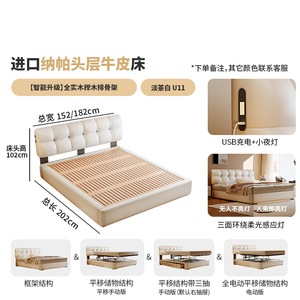 纳帕头层牛皮床【智能款:多功能USB+悬浮感应灯】全实木榉木排骨架
