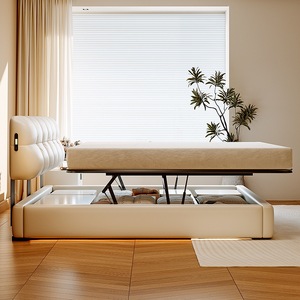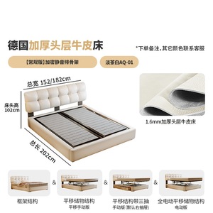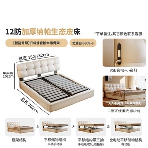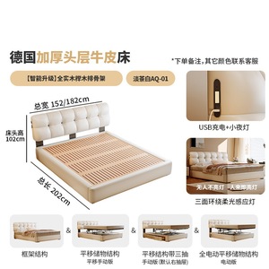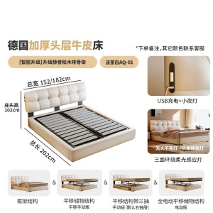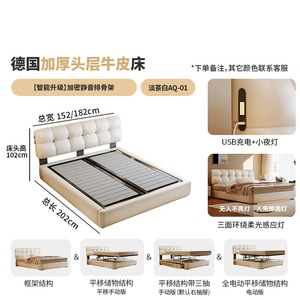 加厚头层牛皮床【智能款:多功能USB+悬浮感应灯】升级静音排骨架