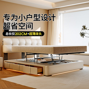 桐语特泡芙真皮超薄床小户型轻奢双人主卧奶油高箱平移储物皮艺床