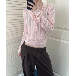 春秋新款韩系V领打底衫套头毛衣女设计感修身显瘦百搭上衣针织衫