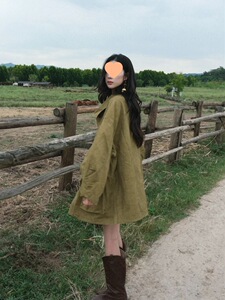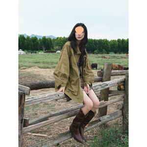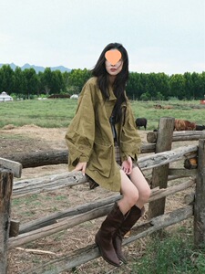 美式复古做旧中长款翻领工装外套秋季新款设计感小众宽松百搭风衣