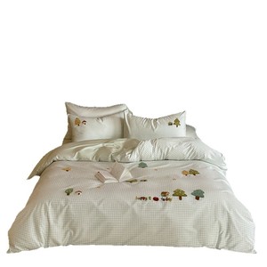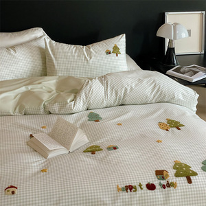 100s长绒棉全棉四件套秋冬纯棉磨毛保暖被套床单床笠刺绣贡缎床品