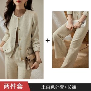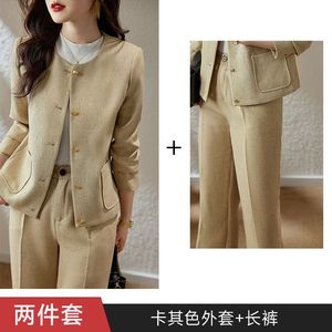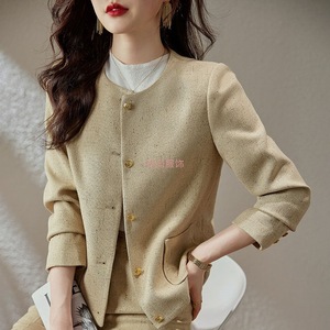 工厂直销百搭圆领小西装外套女2025春装修身两件套通勤时尚西服