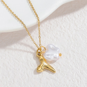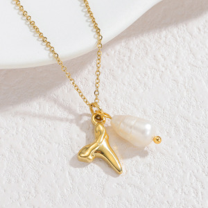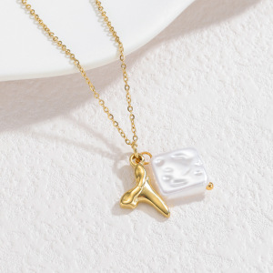 跨境爆款不锈钢不规则吊坠长项链ins简约设计感巴洛克珍珠毛衣链