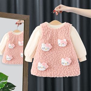 女童加绒连衣裙冬款年服宝宝长袖套装裙卡通背心保暖裙二件套4948