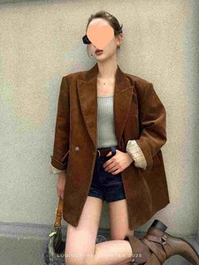 复古灯芯绒西装外套女2025秋季新款宽松枪驳领设计感时髦休闲上衣